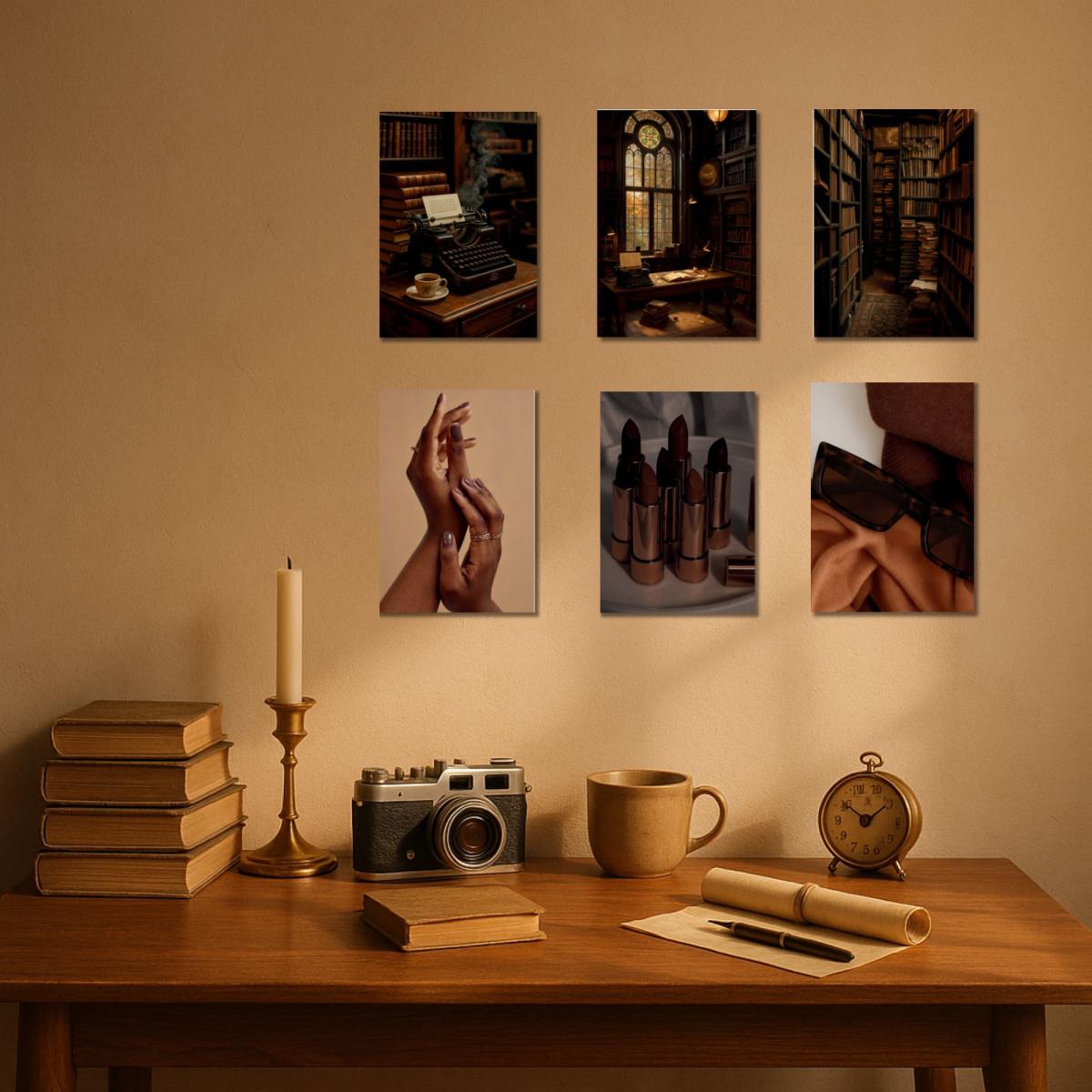 Pack of 6 Brown Aesthetic Wall Posters – Warm Vintage Vibes